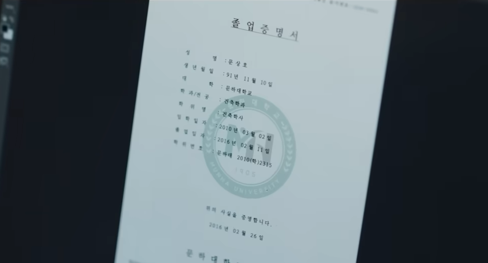 열심히 살면서 면접준비를 했지만 매번 떨어지던 문상호는 결국 졸업증명서를 위조해서 JU건설에 입사하게됩니다.