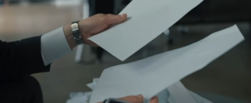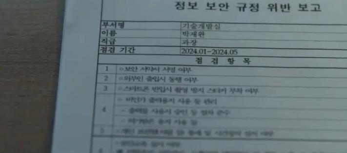 이지훈 실장을 인터뷰 하러 간 당시, 신차일은 이지훈 실장 방에서 보완특수용지가 아닌 일반용지를 발견했는데, 기술개발팀은 기밀누출방지를 위해 모든 문서를 보완특수용지를 사용해야 했기 때문이죠..