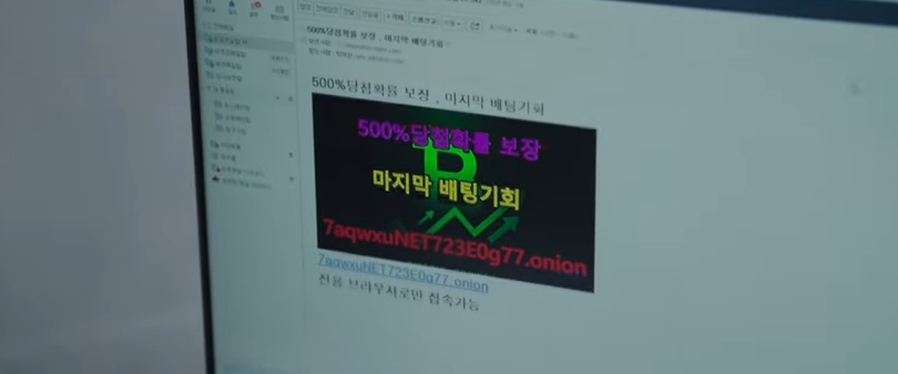 오윤우는 그때 박과장이 이상하게 스팸메일에 답장을 보냈다고 합니다. 수상하게 여긴 구한수와 오윤우는 그 메일을 찾아보게 되고, 기술유출을 하는 다크웹과 연결되어 있는 것을 알게 됩니다.