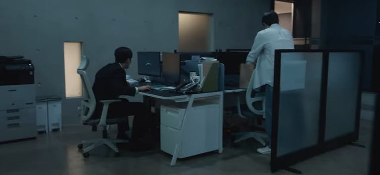 증거를 찾기 위해 구한수와 오윤우는 박과장의 컴퓨터에 있는 스팸초대장을 확인하러 회사에 잠입합니다.