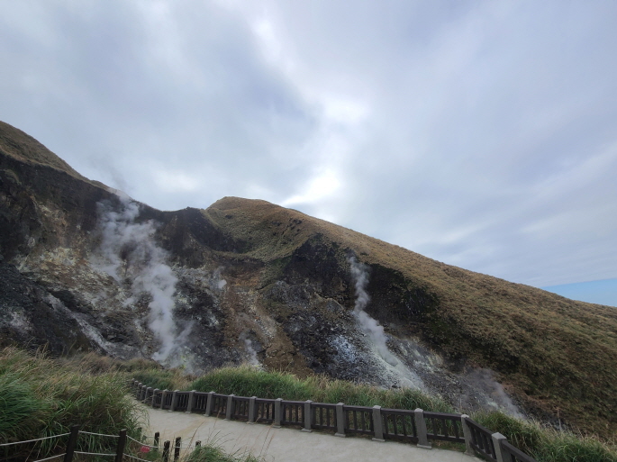 양명산을 활화산으로 사진처럼 유황가스가 계속 배출되고 있죠. 돌 사이 가스가 배출되는것이 장관입니다. 만지면 뜨거우니 조심하라는 문구가 많고, 누군가 달걀도 넣어놨더라구요...유황달걀...ㅋ