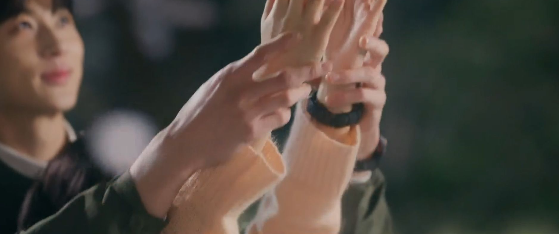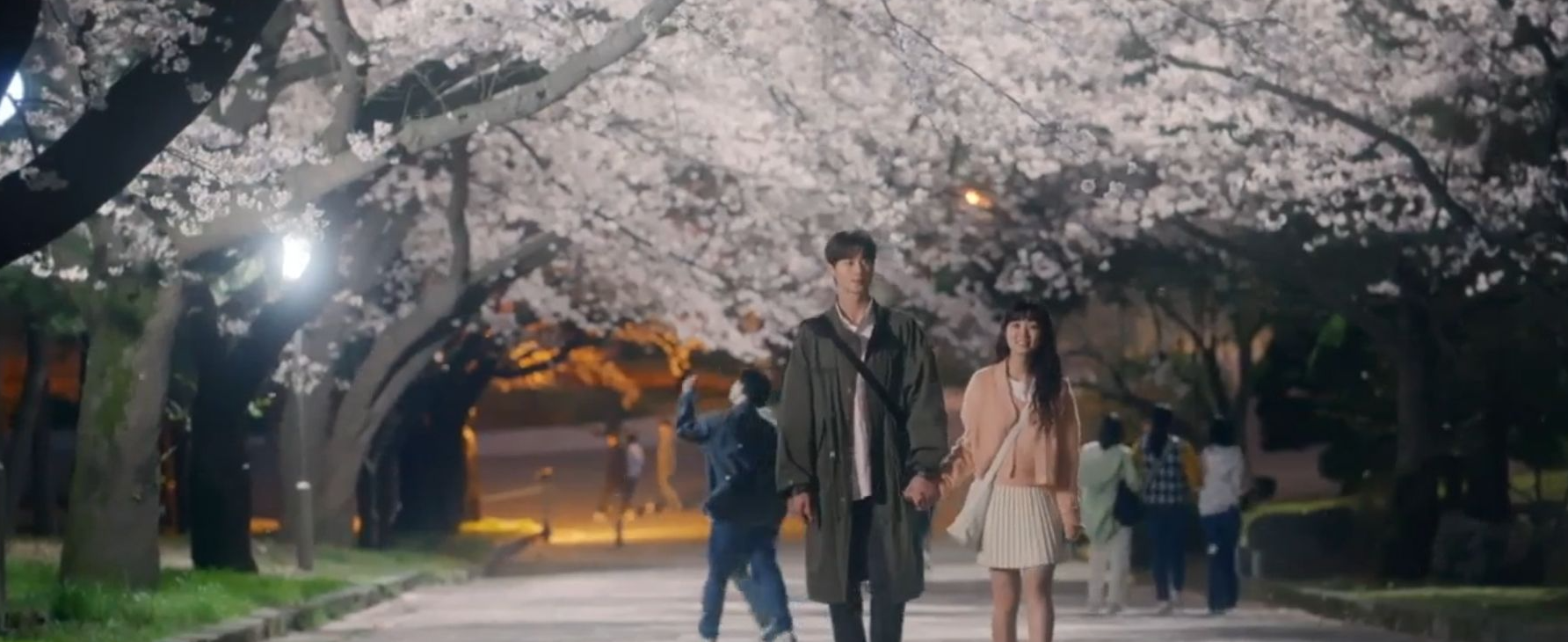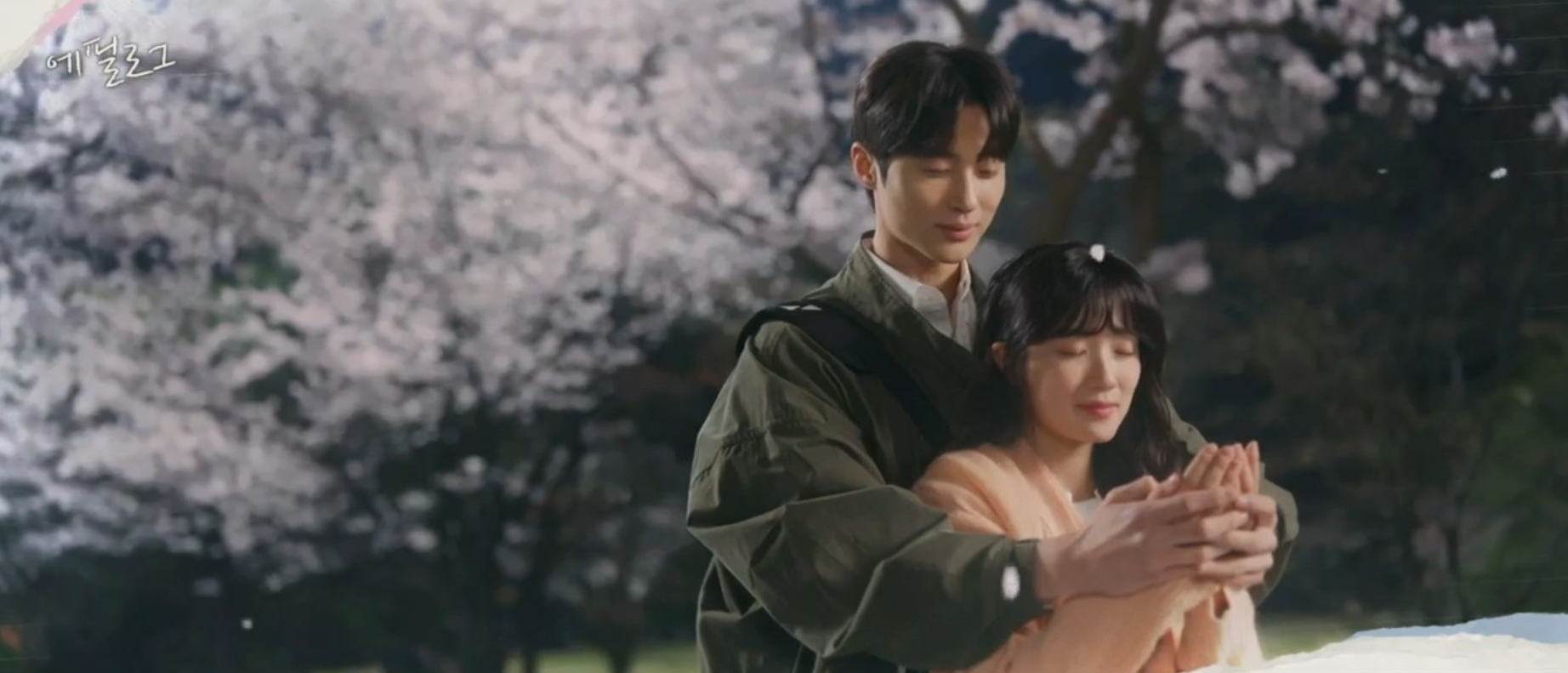 그런 솔이의 손을 잡고 벚꽃을 잡게 도와주는 선재