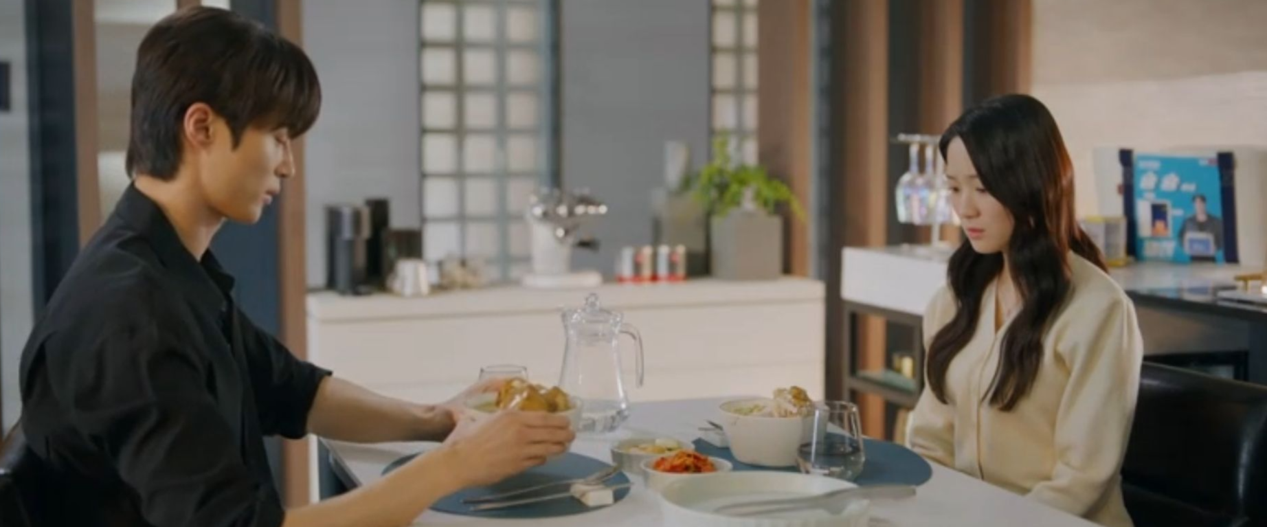 선재는 밥을 먹고 가라고 하고, 예전처럼 삼계탕의 닭고기를 잘 찢어서 솔에게 건네주죠.