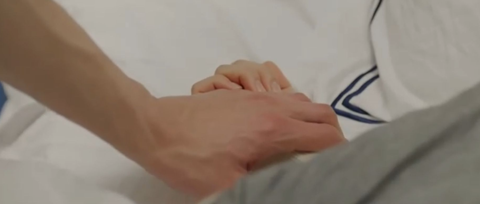 식구들이 잠들었다며 자연스럽게 선재의 손을 잡고 현관으로 이끄는 솔.