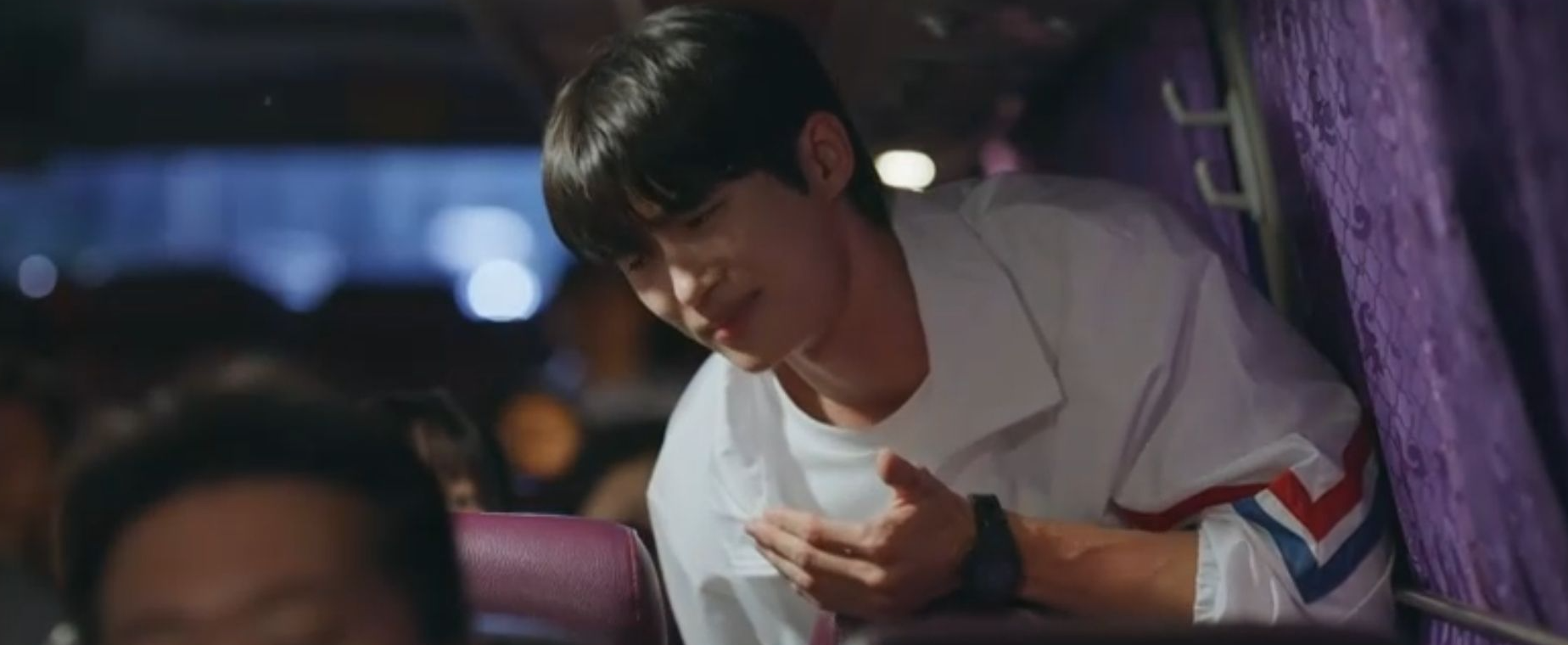 최애 앞에서 생리현상을 말하기 힘든 솔이를 위해서 선재는 본인이 급한 척하고 버스를 세웁니다.