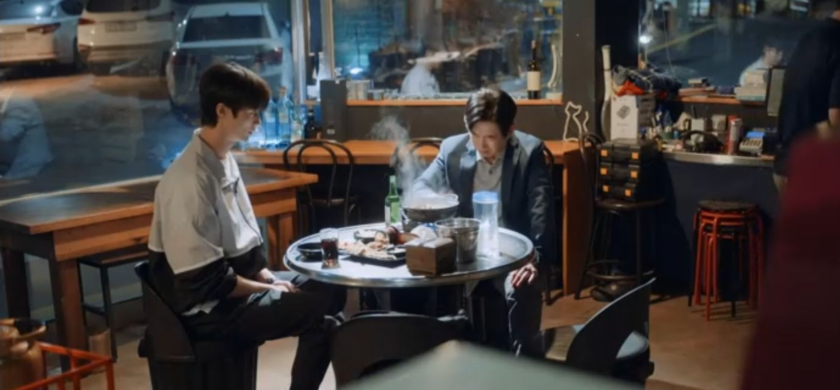 솔이는 술에 취해 졸다가 넘어질뻔 하는걸 선재가 잡아서 자신의 어깨에 기대게 합니다.