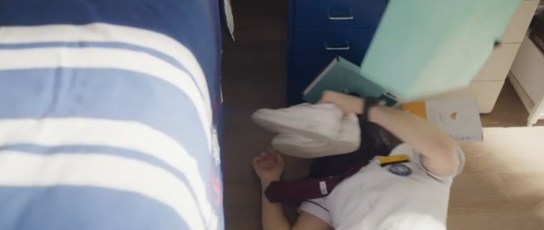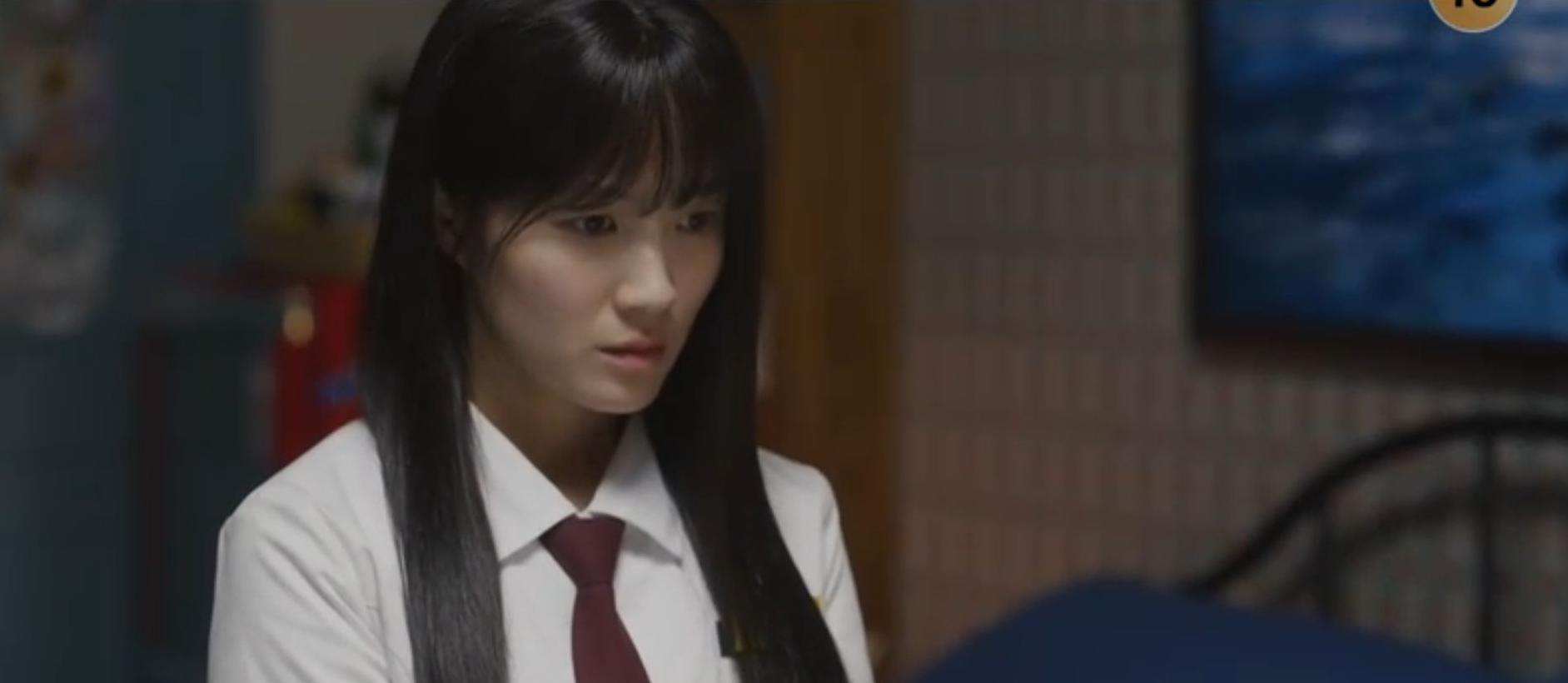 선재의 집에 몰래 들어간 솔이는 명함을 찢어버리는데, 갑자기 선재방으로 들어온 아버지를 피해서 침대밑으로 숨습니다.