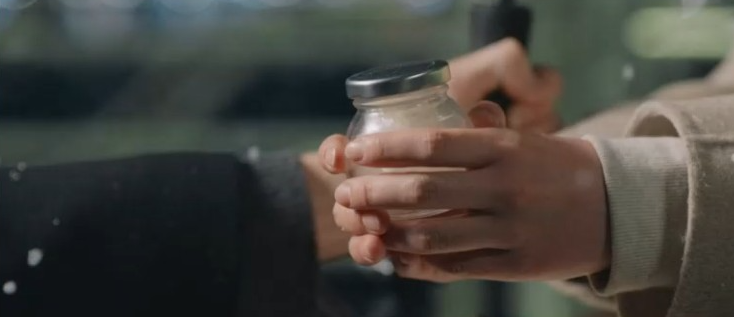 선재에게 사탕을 내미는 솔이. 선재는 예전 택배기사로 오해해서 솔이가 사탕을 쥐어주었던 것을 떠올립니다.