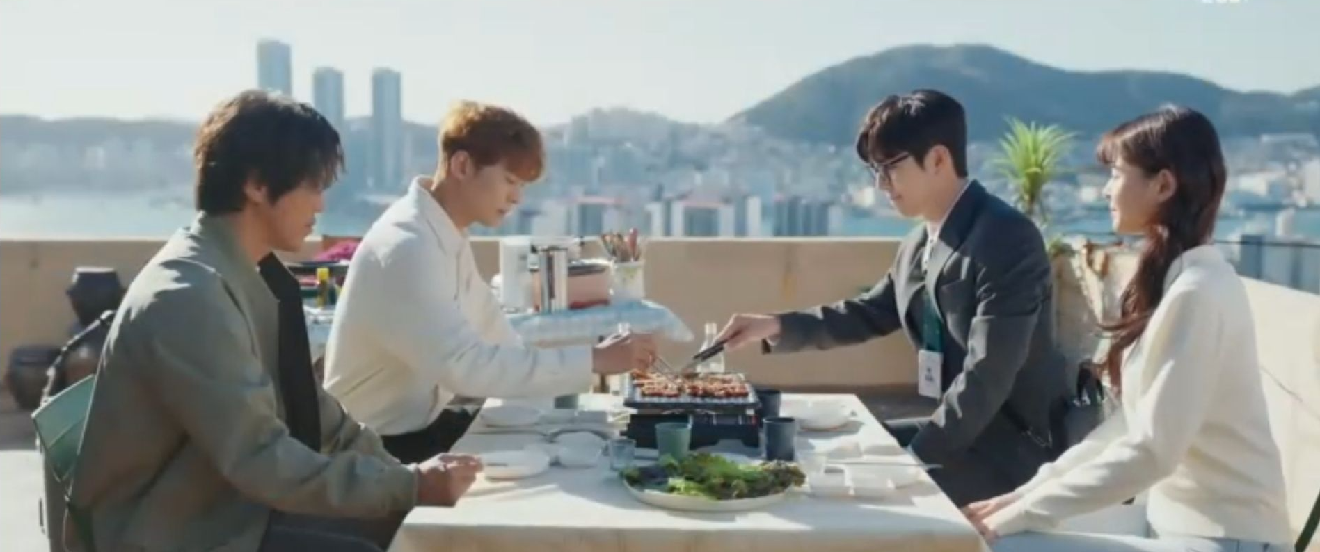한편, 아침에 퇴근한 김지원이 백형사 대신 회식자리에 대신 참여하고 되고, 고대리는 고기를 먹다가 얼굴도 몰랐던 소개팅녀가 김지원이었던 것을 알게됩니다. 지원은 잠수탄 남자떄문에 소개팅 트라우마가 있다고 하죠.