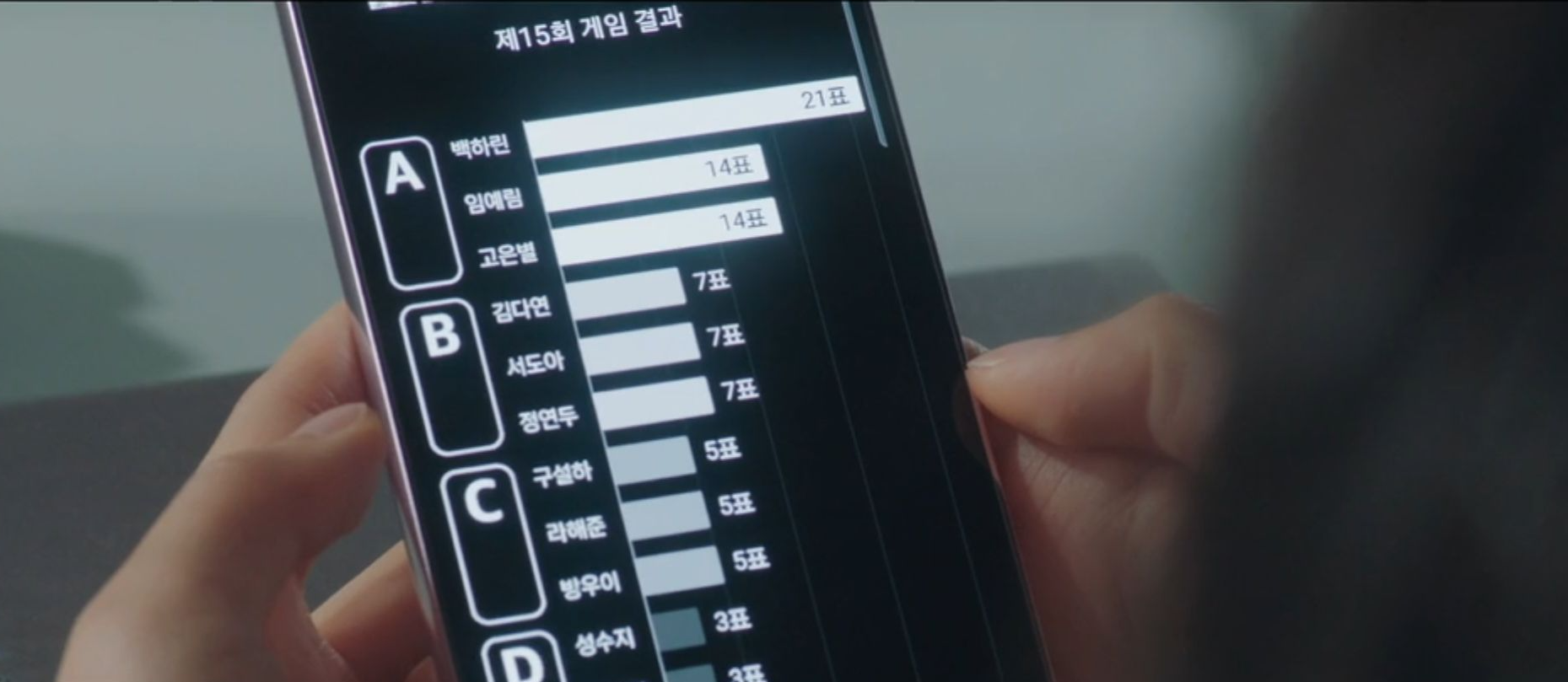수지는 예린을 A등급으로 만들기로 결심합니다. 그래서 D등급 아이들이 자신이 아닌 예린에게 투표하게 하죠.